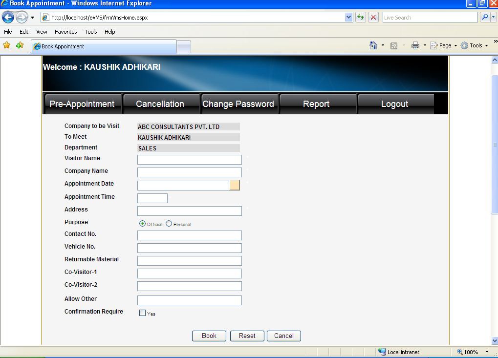 Each user can book his appointment through the web based application.
